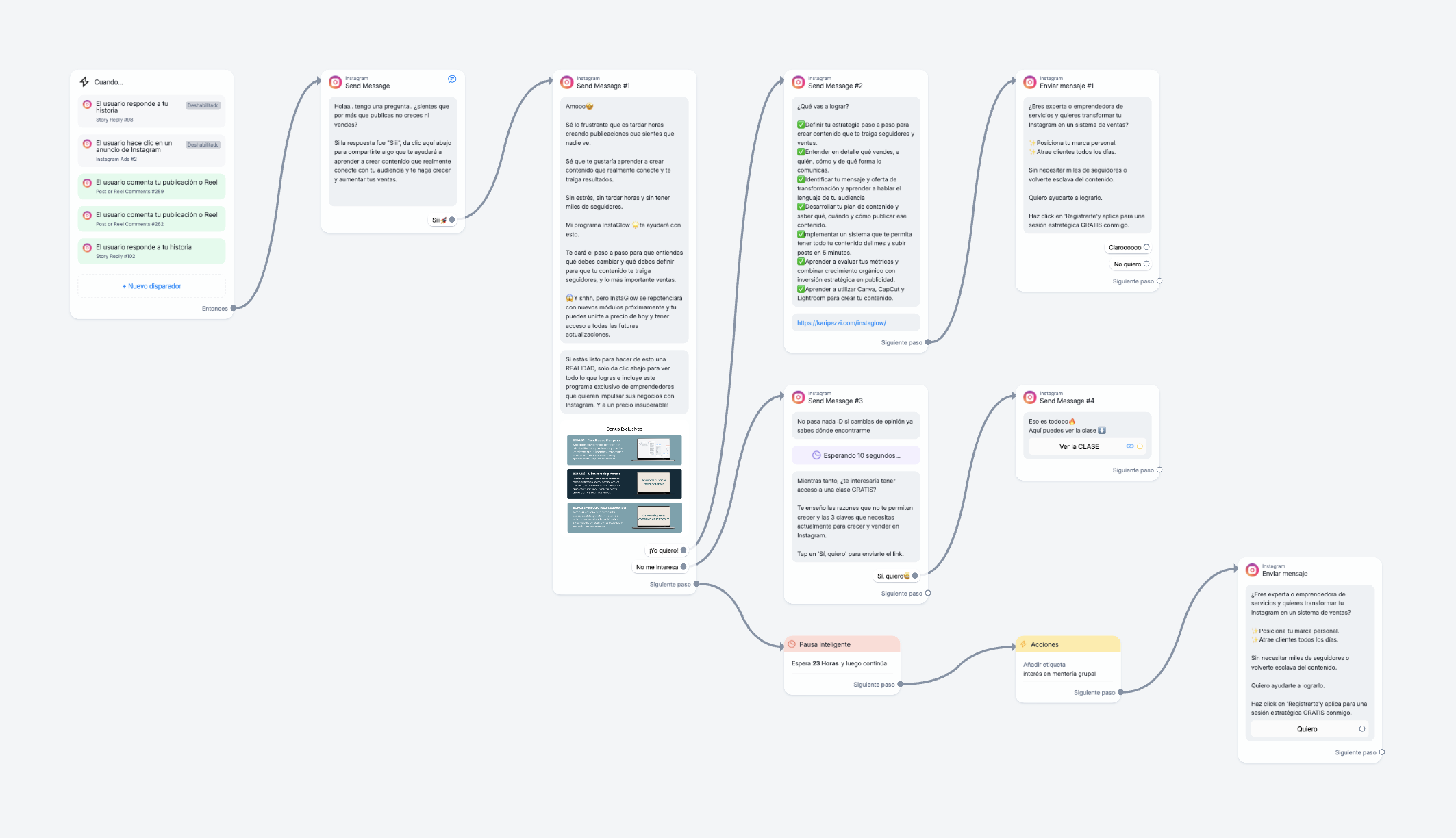 Tutoriales paso a paso para enseñarte a crear las automatizaciones que uso en mi día a día para captar leads y vender en automático.