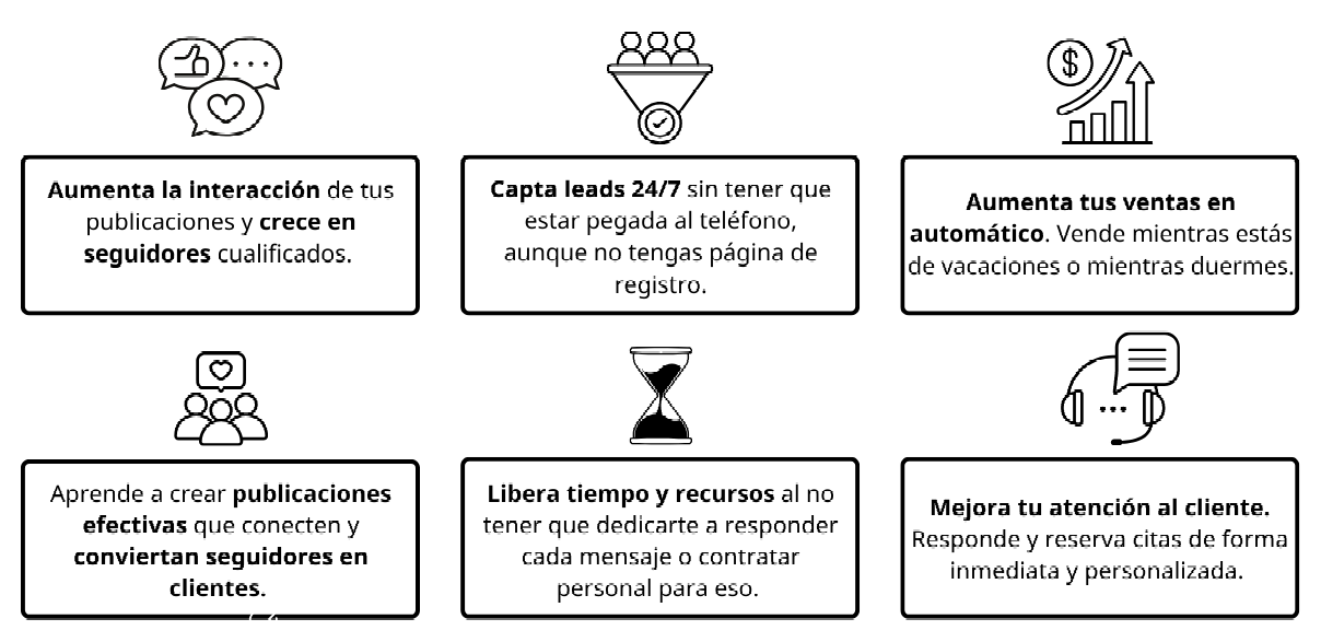 ✓ Quieres ahorrar tiempo y dinero respondiendo mensajes y reservando citas.